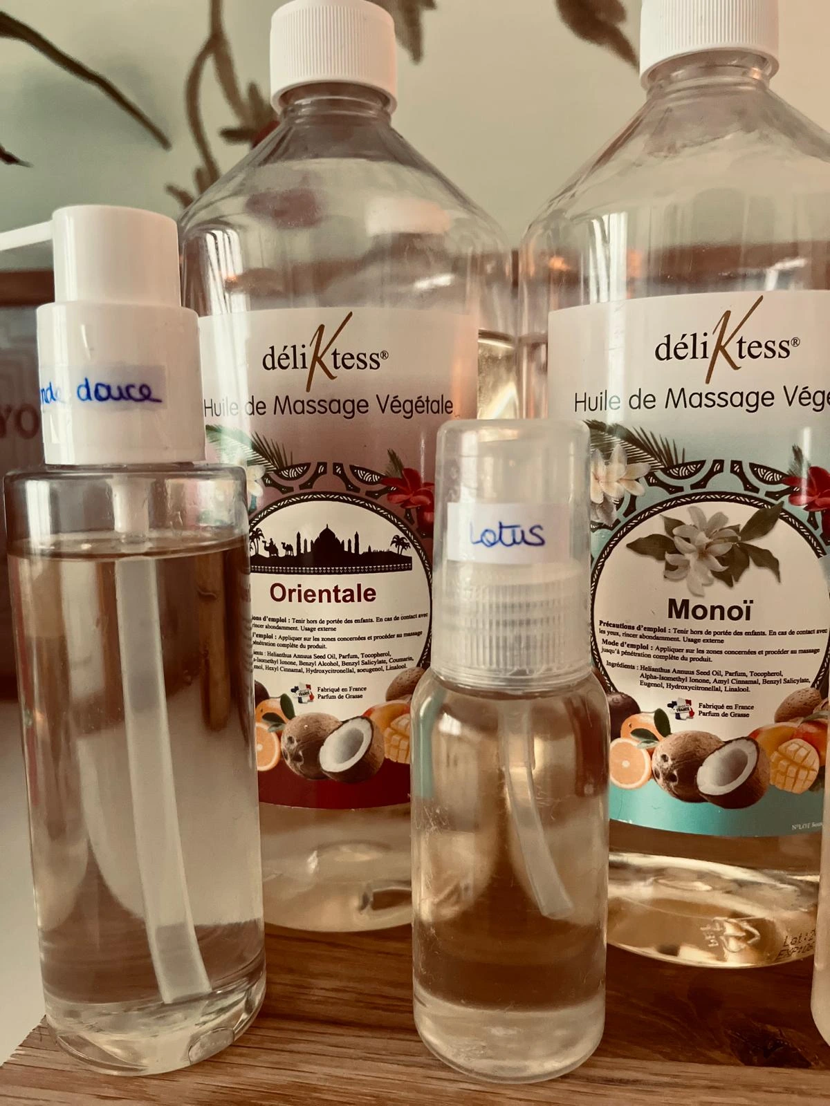 Je travaille avec les huiles essentielles Deliktess, reconnues pour leur pureté et leur qualité énergétique. Ces photos vous permettent de découvrir les produits que j’utilise lors de mes soins énergétiques et massages. Chaque huile est sélectionnée avec soin pour ses bienfaits naturels, favorisant l’équilibre du corps et de l’esprit tout en accompagnant le processus de libération émotionnelle.