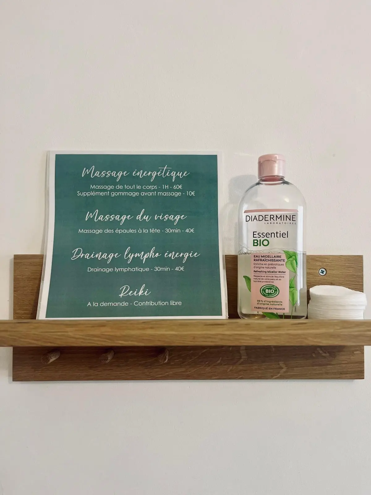 Mon cabinet vous accueille dans une atmosphère chaleureuse et apaisante, parfaite pour vos massages bien-être et soins énergétiques. J’utilise des produits naturels de la marque DéliKtess pour garantir une expérience unique et respectueuse de votre peau.